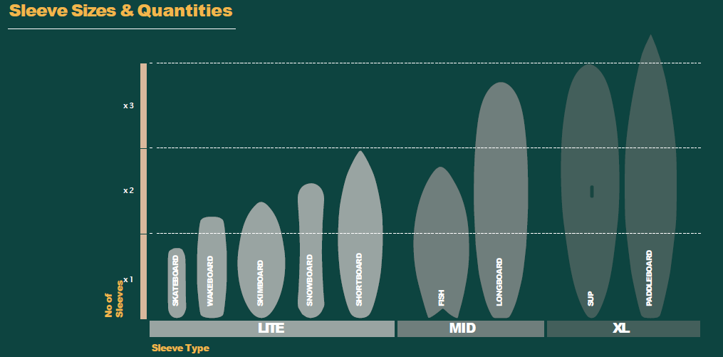 Due to our sleeves being open-ended, multiple sleeves can be cut to size and joined at the seam using paper tape, creating a single packaging solution that will protect boards of every length.